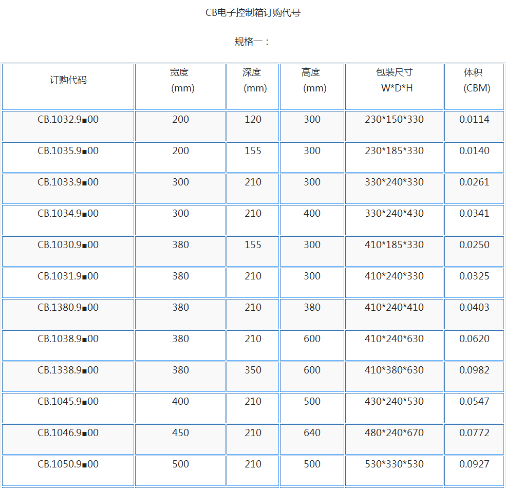 CB电子控制箱主要规格及性能